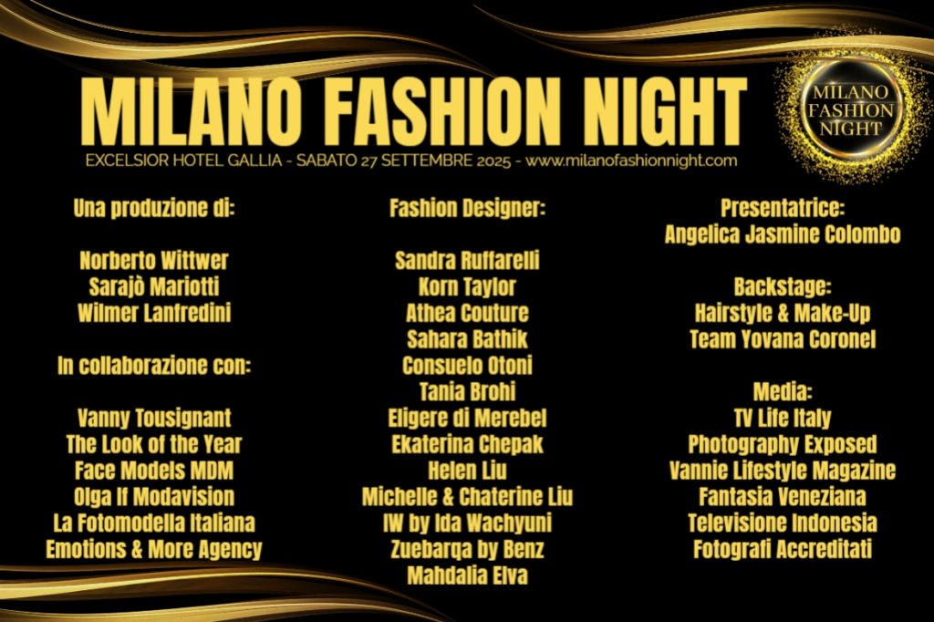ore 19:30 inizio sfilata con i Teenager, Fashion Designer Sahara Bathik, Consuelo Otoni, Tania Brohi, Eligere di Merebel e Ekaterina Chepak. Coreografia Sarajò Mariotto